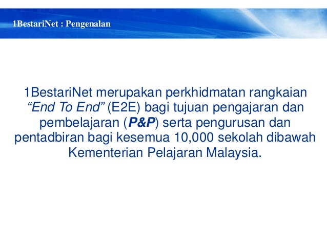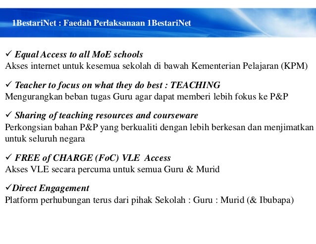 . ABD GANI BIN ABAS. AB KADIR BIN ARIPIN. Akses kepada pelbagai perkhidmatan dalam talian menjadi mudah dengan adanya sambungan internet jalur lebar tanpa wayar seperti 1BestariNet di sekolah Kementerian Pendidikan Malaysia 2012 dan boleh dijalankan dengan peranti digital seperti tablet atau telefon bimbit.